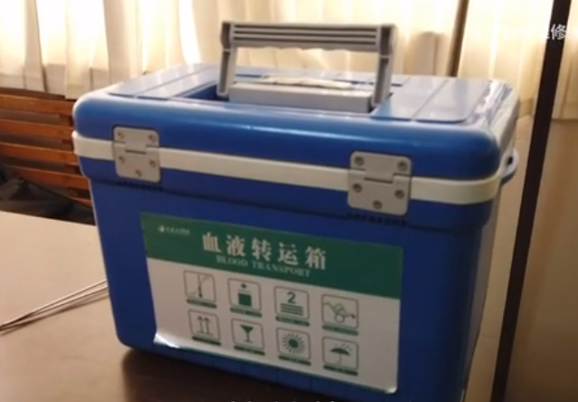 醫(yī)院輸血、送血,用血液中轉(zhuǎn)箱來(lái)周轉(zhuǎn),它是一個(gè)帶保溫功能的箱子。箱子里面內(nèi)膽可能有一些泡沫之類的保溫材料。箱子的前面有一塊液晶顯示屏,用來(lái)顯示箱子溫度數(shù)據(jù)。不顯示的話就是電池沒(méi)了需要更換電池。箱子的扣子打開(kāi)后,正常的話是放冰袋之類的東西,它的目的是可以讓里面的血液保持在一個(gè)恒定的溫度。因?yàn)槲覀冋5难旱臏囟刃枰娣旁诎藬z氏度左右。拿走上面的格子槽,可以看到箱體里面的大空間來(lái)存放血液制品。根據(jù)血液、血漿、血小板不同材料要求來(lái)進(jìn)行溫度調(diào)節(jié)。溫度不會(huì)受外界影響變化。