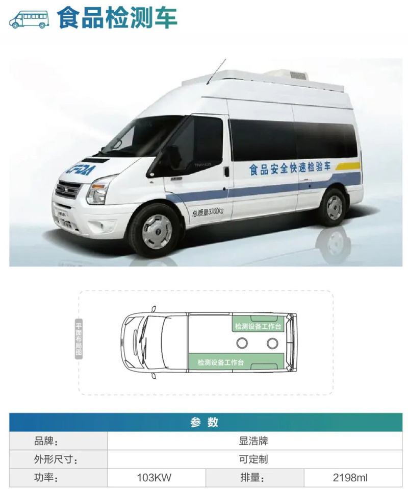 檢測車上,蔬菜中的農(nóng)藥殘留吊白塊、二氧化硫進行快檢測定,車上配有農(nóng)藥殘留快速監(jiān)測儀、食品多功能監(jiān)測儀等7種儀器設備,可以對蔬菜、肉類等進行17種檢測,最快只要5分鐘。檢測車有移動檢測的設備技術,有效地檢測食品中農(nóng)藥殘留、獸藥殘留、海鮮的藥物殘留等有毒有害殘留的快速檢測問題。檢測項目包括農(nóng)藥殘留、瘦肉精、亞硝酸鹽等?,F(xiàn)場抽樣檢測工作,現(xiàn)場提取樣本、現(xiàn)場檢測、現(xiàn)場出檢測結果,以保證合格的食用農(nóng)產(chǎn)品進入餐桌。通過最快速的檢測方法對食用農(nóng)產(chǎn)品開展抽樣檢測,食品安全快速檢測,進一步提高食品安全監(jiān)管效率。豬肉及豬肉制品、食用油、米面制品、食用農(nóng)產(chǎn)品、水產(chǎn)品等食品為重點品種。檢測車確保群眾吃得安全、吃得放心,食品進行篩查,消除安全隱患。