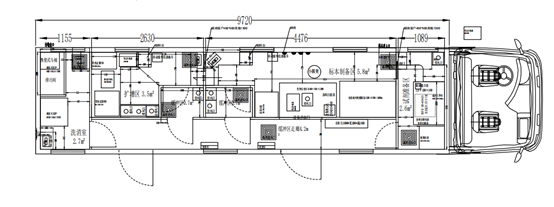 移動核酸檢測車按功能可分為試劑準備區(qū)、樣本制備區(qū)、擴展分析區(qū)、消殺區(qū)和設備間。