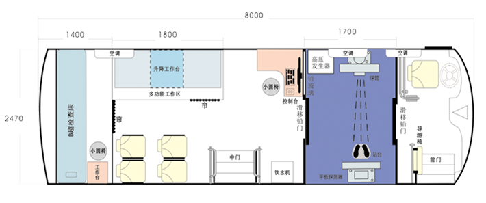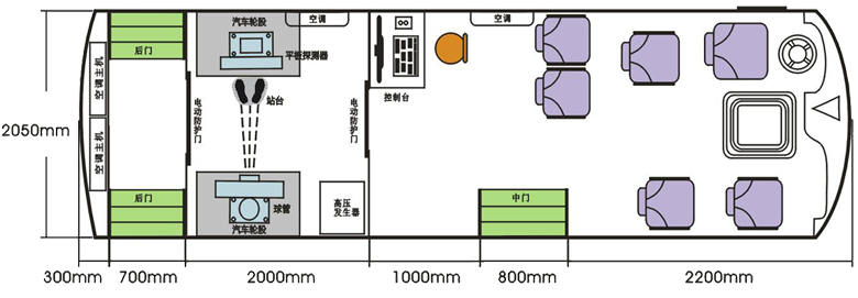 DR體檢車立鉛防護(hù)室,把DR鉛防護(hù)室安裝體檢車中心,圖像數(shù)字化處理成像準(zhǔn)確。比醫(yī)院的科室DR便捷,而且有相當(dāng)不錯的抗震效果,在生產(chǎn)DR車的時候,考慮到車載DR較科室DR功率略小,在體檢車上定制車載DR能高效完成放射類體檢項(xiàng)目。其放射X劑量少很多,也讓移動體檢車在行駛過程中更安全。采用三層以上噴涂噴砂技術(shù)、防銹防腐、光亮鈀漆技術(shù)。
