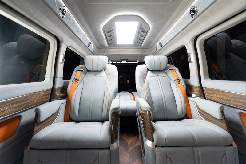 前排保留原車質(zhì)感同時,加入全新設計語言,簡約現(xiàn)代與中式美學相結合,雙色搭配,更顯高級感,主副駕駛座椅采用納帕包覆,直接提升整車質(zhì)感,還可提升舒適度,讓主副駕駛位,都能有一個尊貴體驗改裝商務車的質(zhì)感、觸感雙升級,十分明顯商務接待、長途旅行都能享受視覺與觸覺的“心靈棲息”
