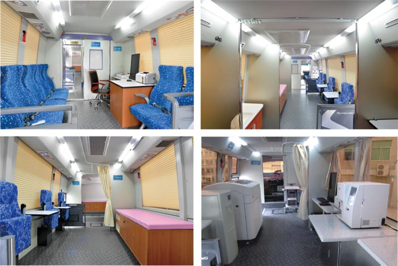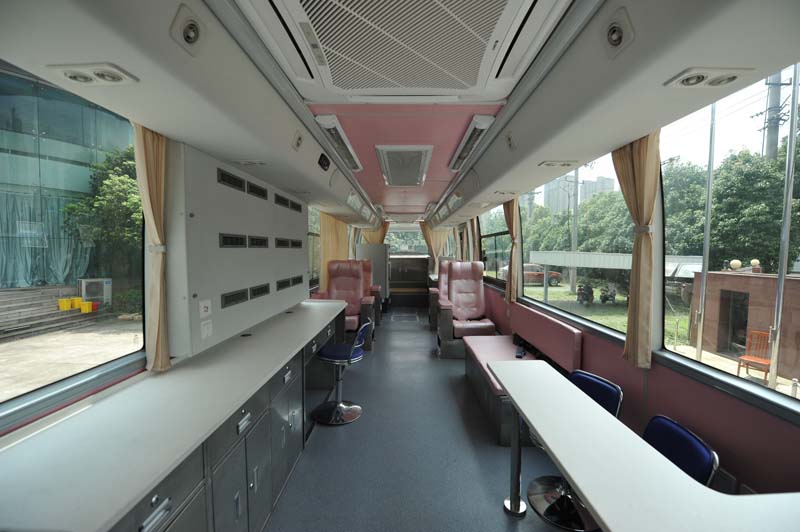 專業(yè)的流動獻血車征詢區(qū)、體檢區(qū)、采血區(qū)、休息區(qū)布置合理,綠色、環(huán)保的特點,實現(xiàn)廢氣零排放。車內(nèi)配置了頭等艙式獻血椅,獻血車實際所用到醫(yī)療設(shè)備一應(yīng)俱全,總體空間十分寬闊。大部分流動的獻血車都有冷暖空調(diào)系統(tǒng)、熱合機臺、醫(yī)用血液冷藏箱、工作臺椅、飲水機、烘手機、配電柜、采血椅、采血臺、紫外線消毒燈、 污物桶、滅火器、排風(fēng)系統(tǒng)等。全車配備先進的平穩(wěn)支撐系統(tǒng),配置了網(wǎng)絡(luò)WIFI,空氣凈化消毒系統(tǒng),確保獻血活動開展時車內(nèi)空氣的潔凈衛(wèi)生,是一個移動體檢中心可用于現(xiàn)場體檢和采血。